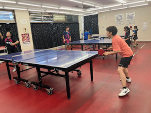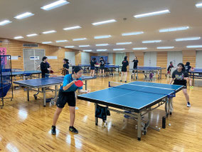 緊急事態宣言が出されたため棄権する人がいましたが、集まった参加者で卓球を楽しみました。